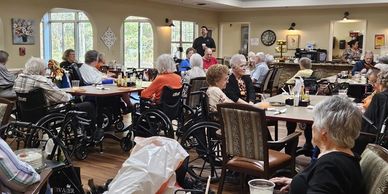 We connect a professional entertainer to present a fun, interactive, and engaging show which is approximately one hour in length at your facility (long term care facility, senior center, veteran’s facility, etc.) or wherever these groups gather. These quarterly shows may also be Sidewalk Serenades or Patio Performances.